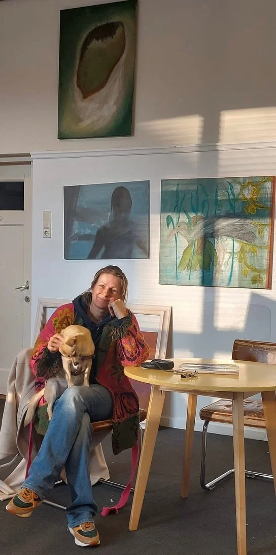 De laatste jaren ligt haar hart vooral bij het schilderen: krachtige doeken waarin natuur en vrouwelijkheid centraal staan. Haar werk beweegt zich tussen figuratief en abstract, altijd met een poëtische gelaagdheid in kleur en sfeer. Elk schilderij vertelt een verhaal.
